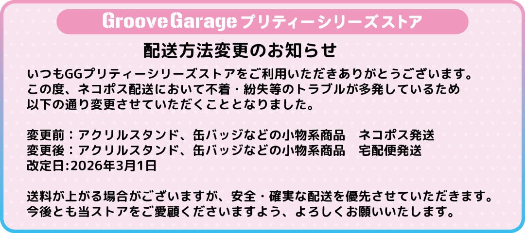 変更前→アクリルスタンド、缶バッジなどの小物系商品→ネコポス発送